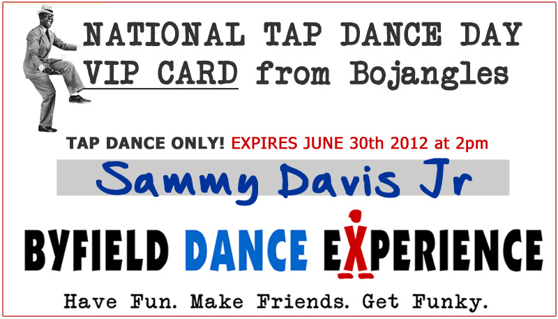 May 25th is National Tap Dance Day. Why? ‘Cause it’s my BIRTHDAY! The fine folk over at Byfield Dance Experience never forget nothin’, so they givin’ me & you TWENTY FIVE DAYS of TAP DANCE with a SECRET, dirt cheap, V.I.P. pass for hoofers ONLY…
